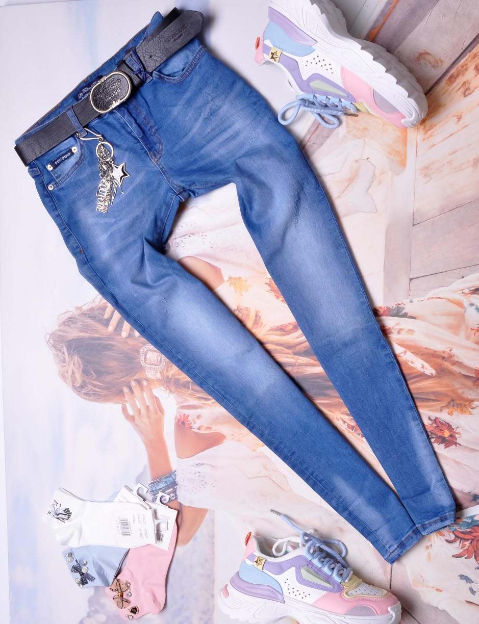 PUCCIHINO - NIEBIESKIE JEANSY SLIM FIT + PRZYWIESZKI