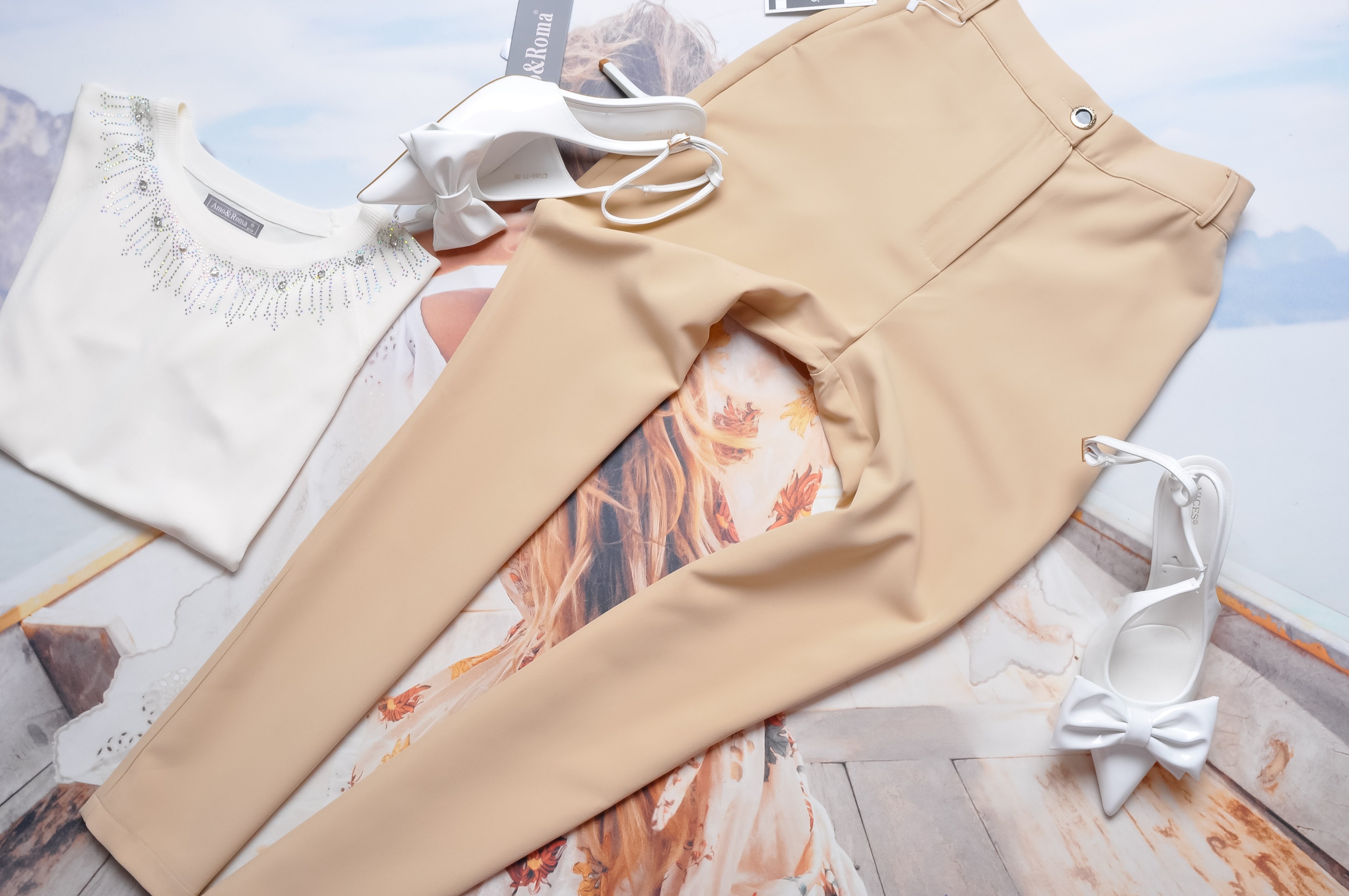 PUCCIHINO SPODNIE BEŻOWE ELEGANCKIE