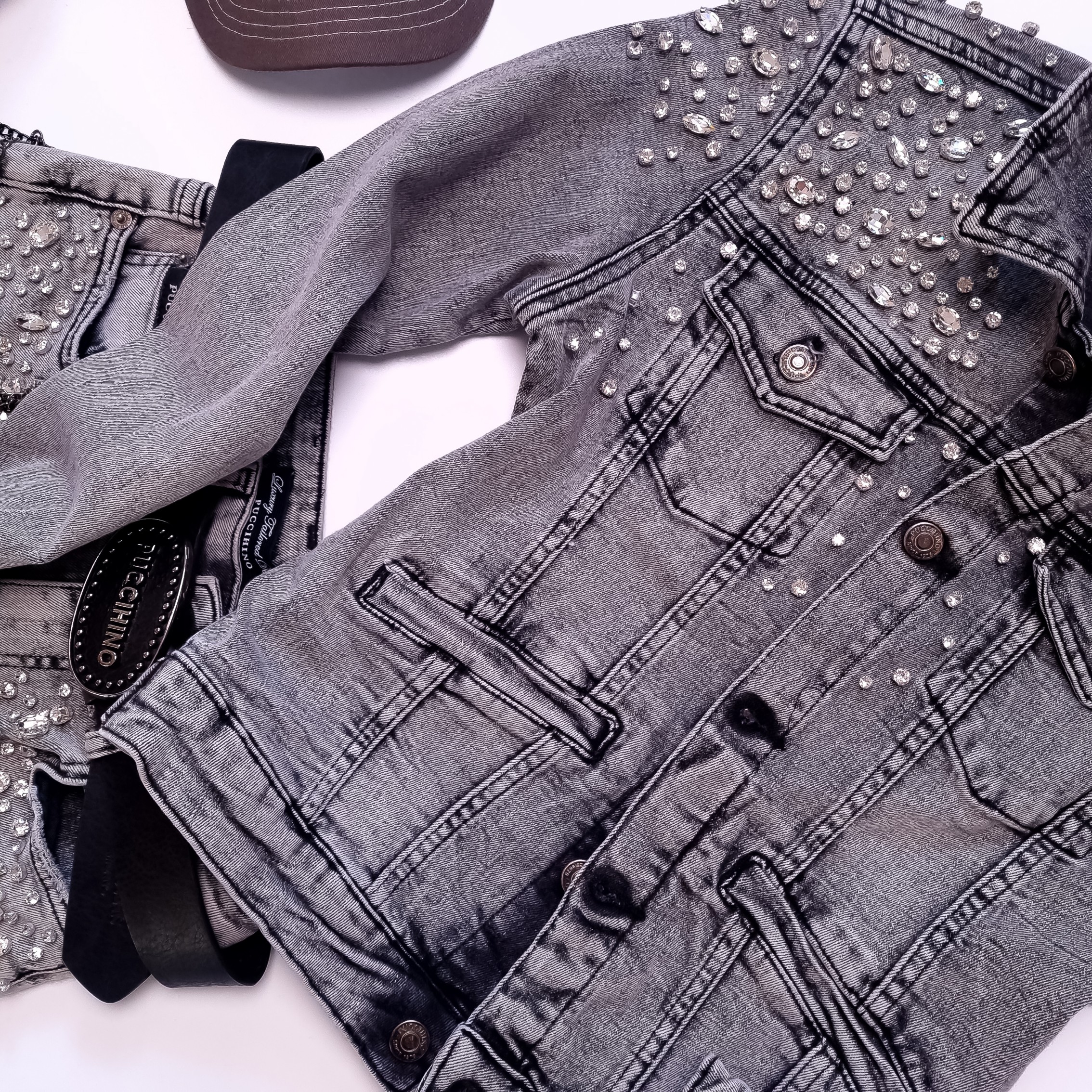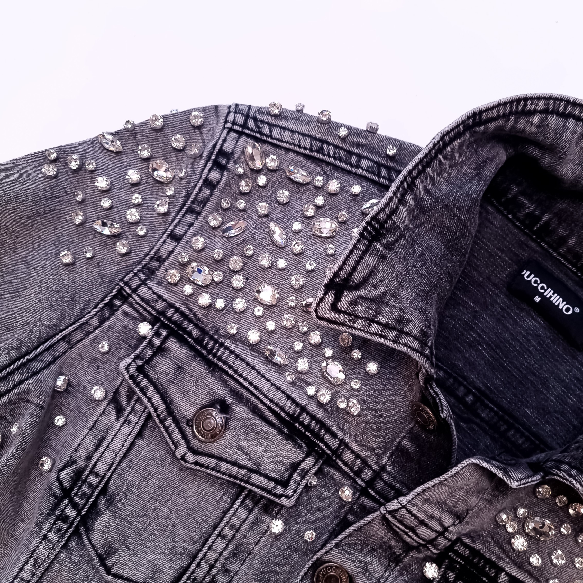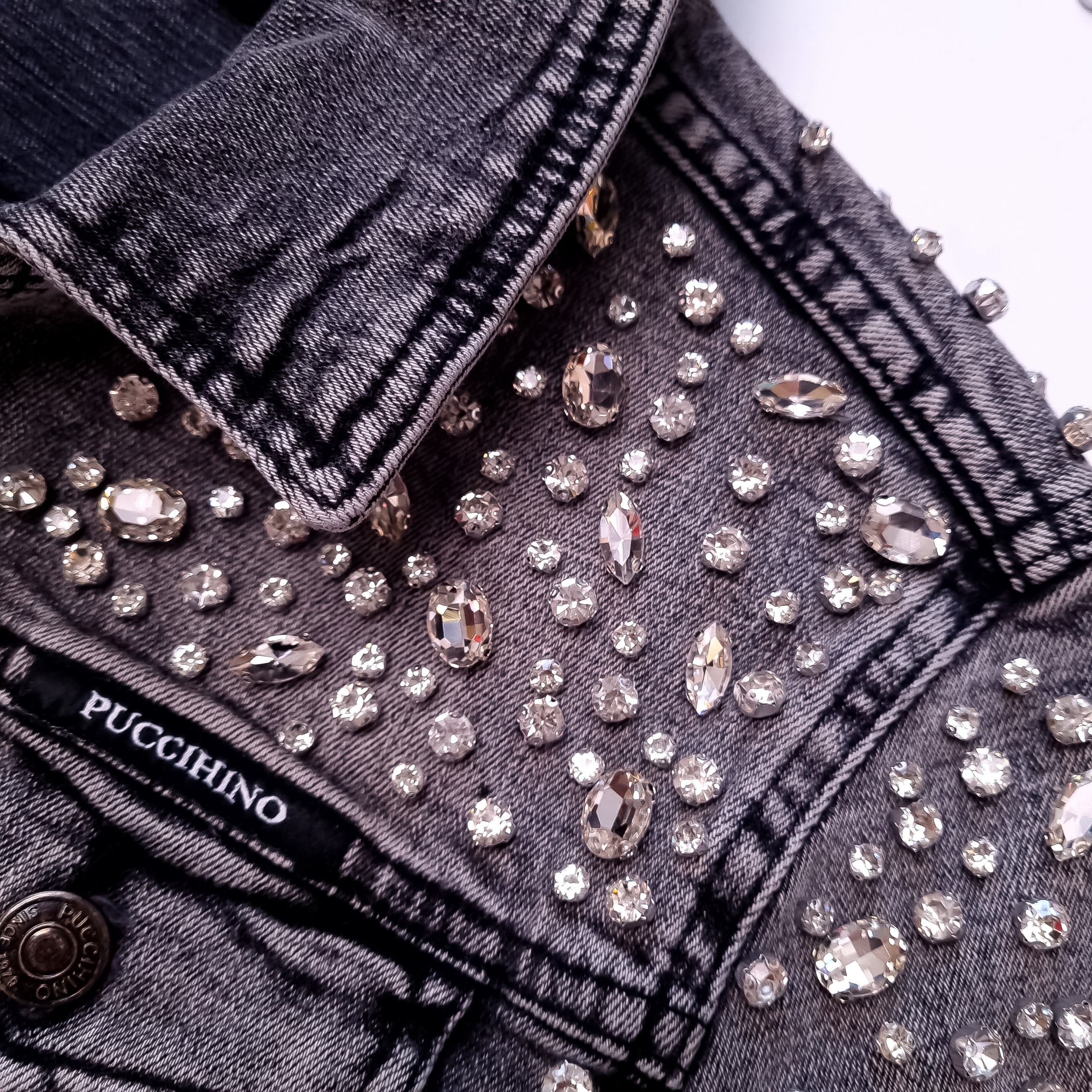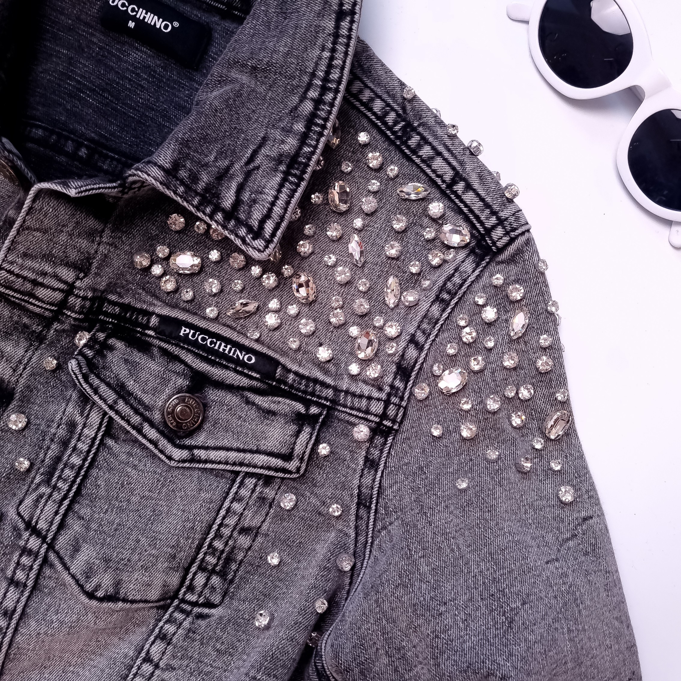 PUCCIHINO - SZARA JEANSOWA KURTKA Z CYRKONIAMI'