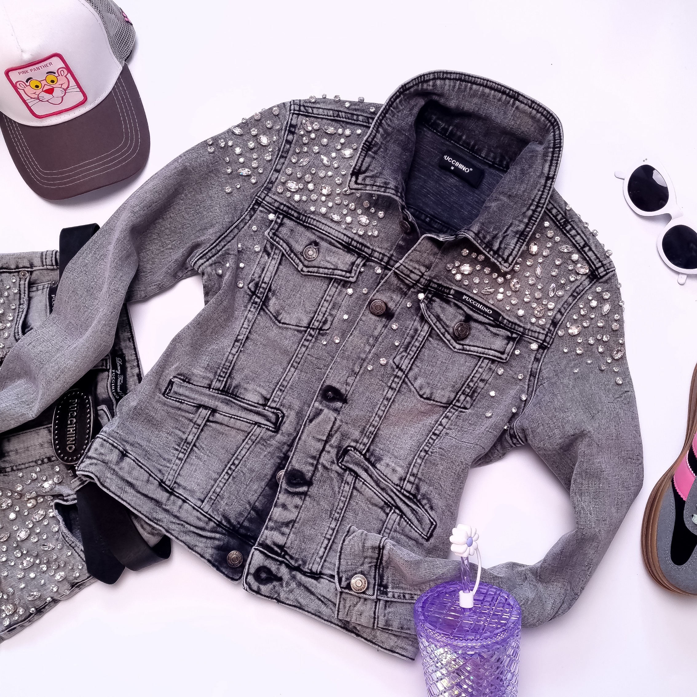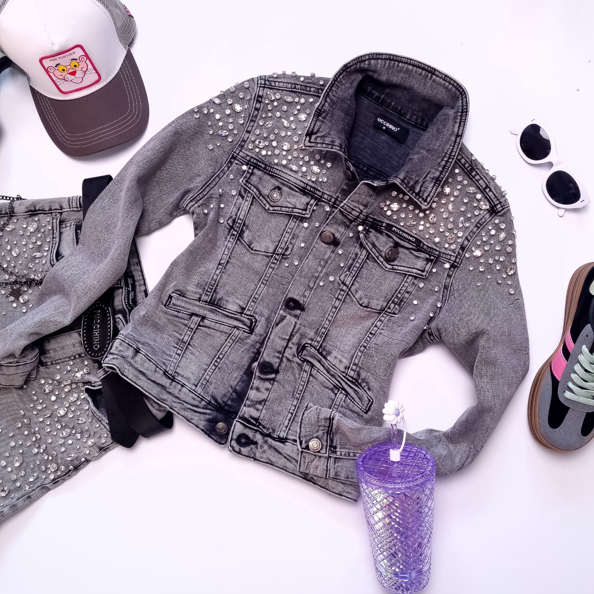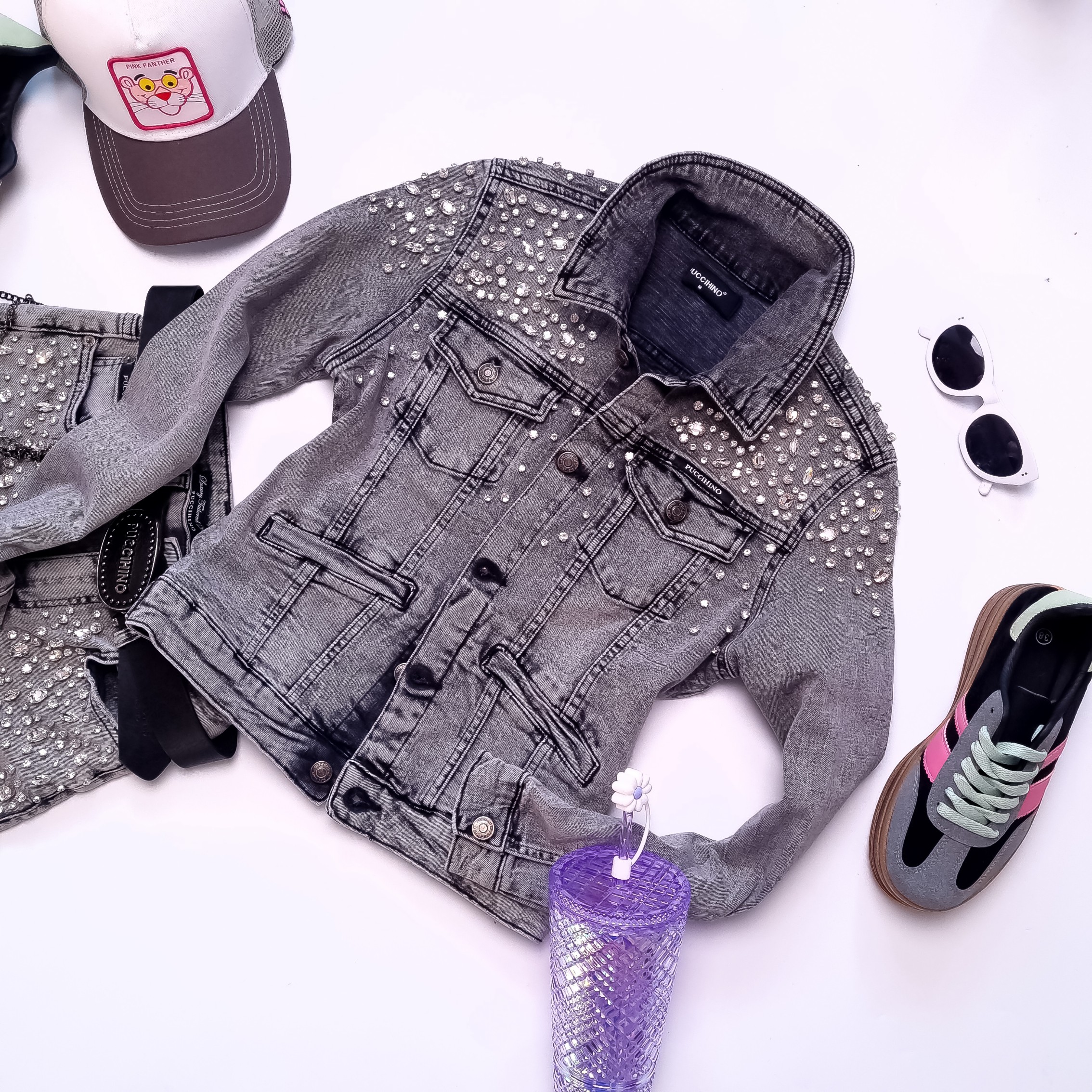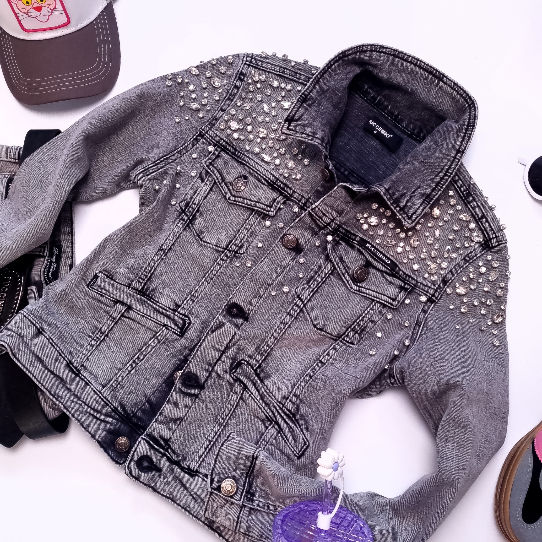 PUCCIHINO - SZARA JEANSOWA KURTKA Z CYRKONIAMI'