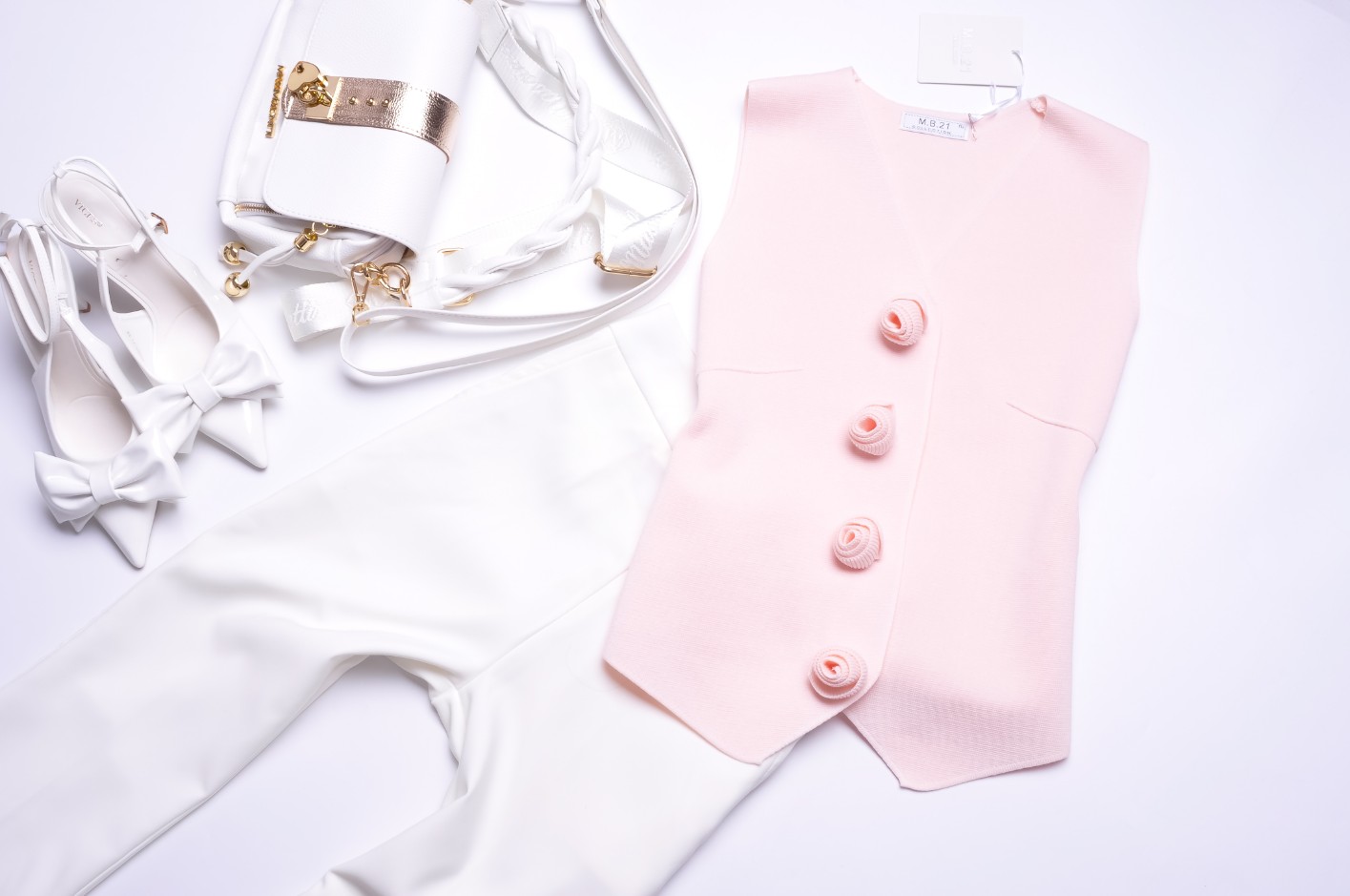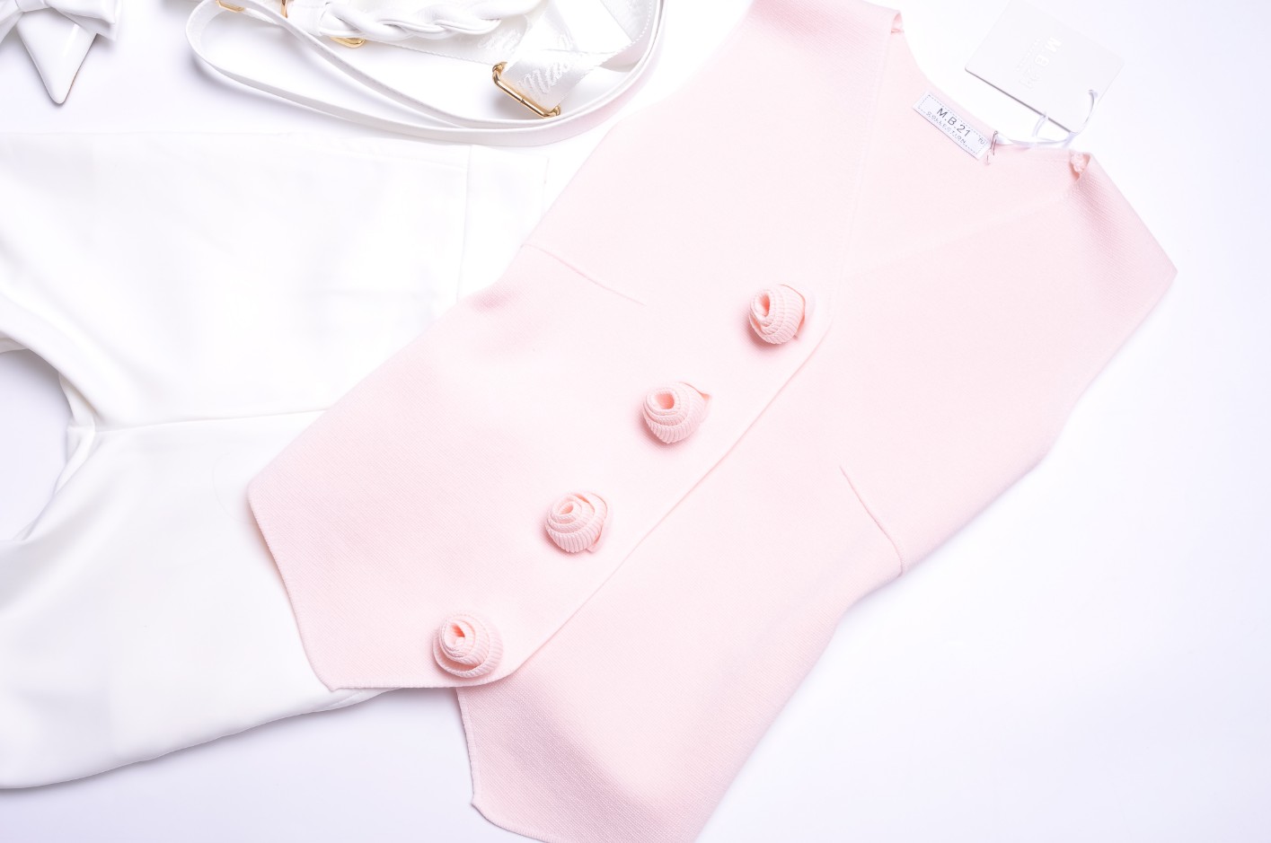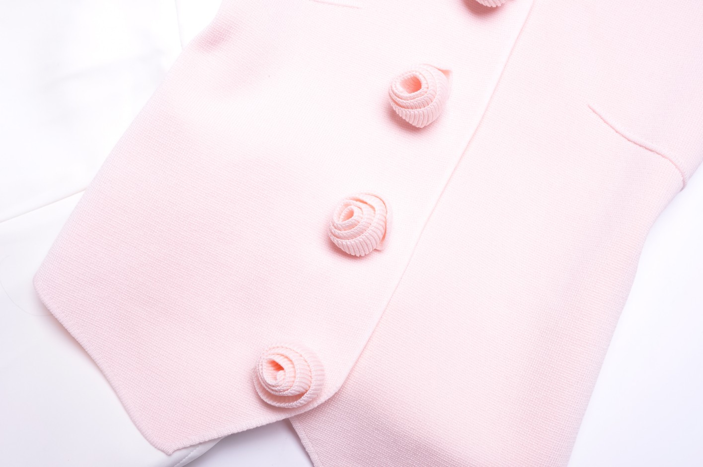 PUDROWO - RÓŻOWA DZIANINOWA KAMIZELKA - KWIATUSZKI
