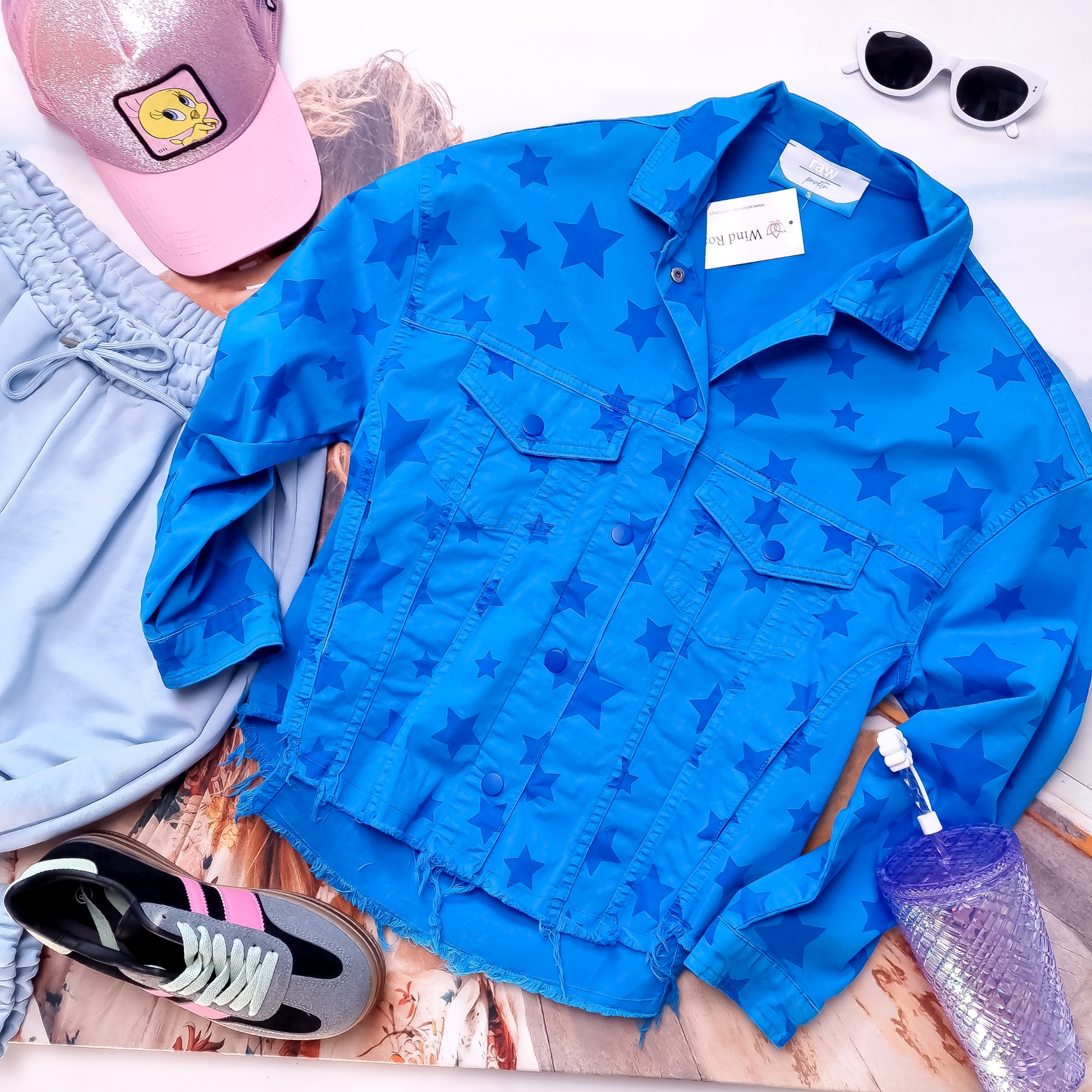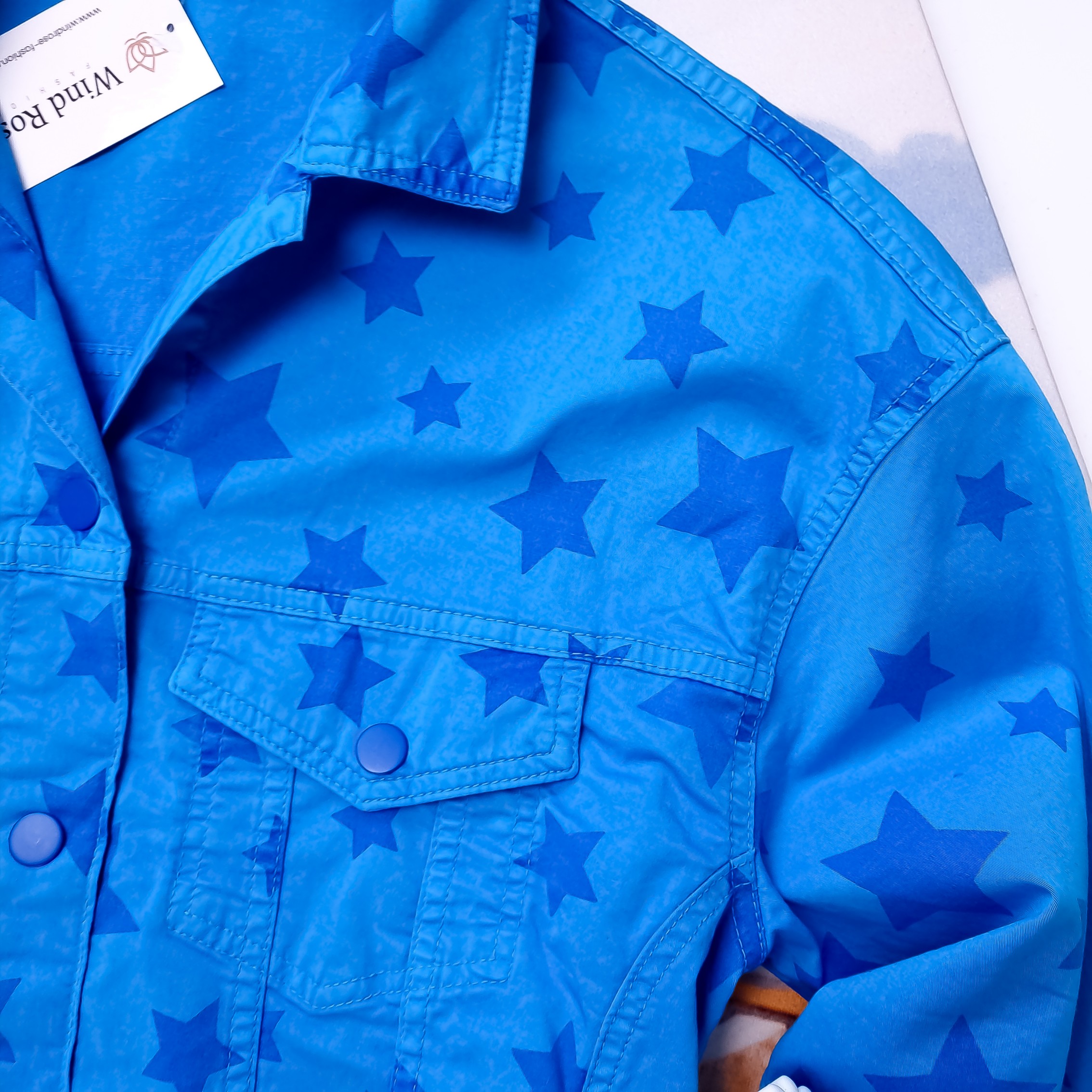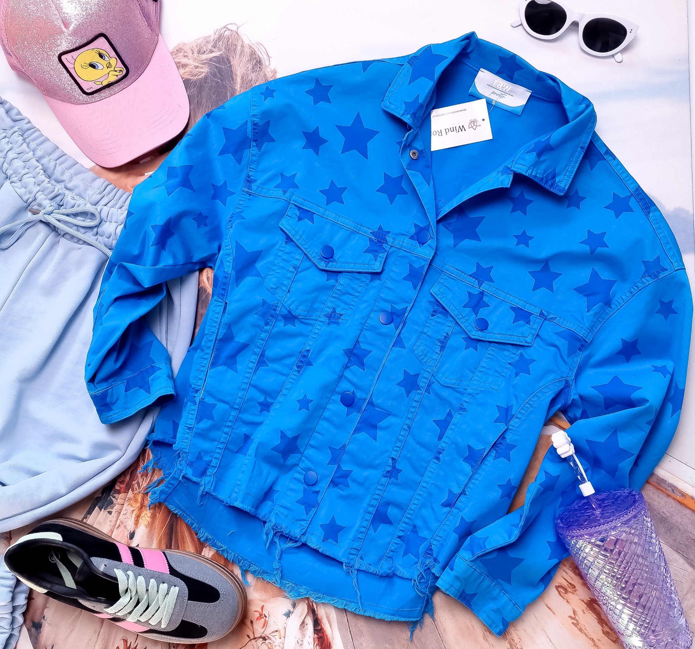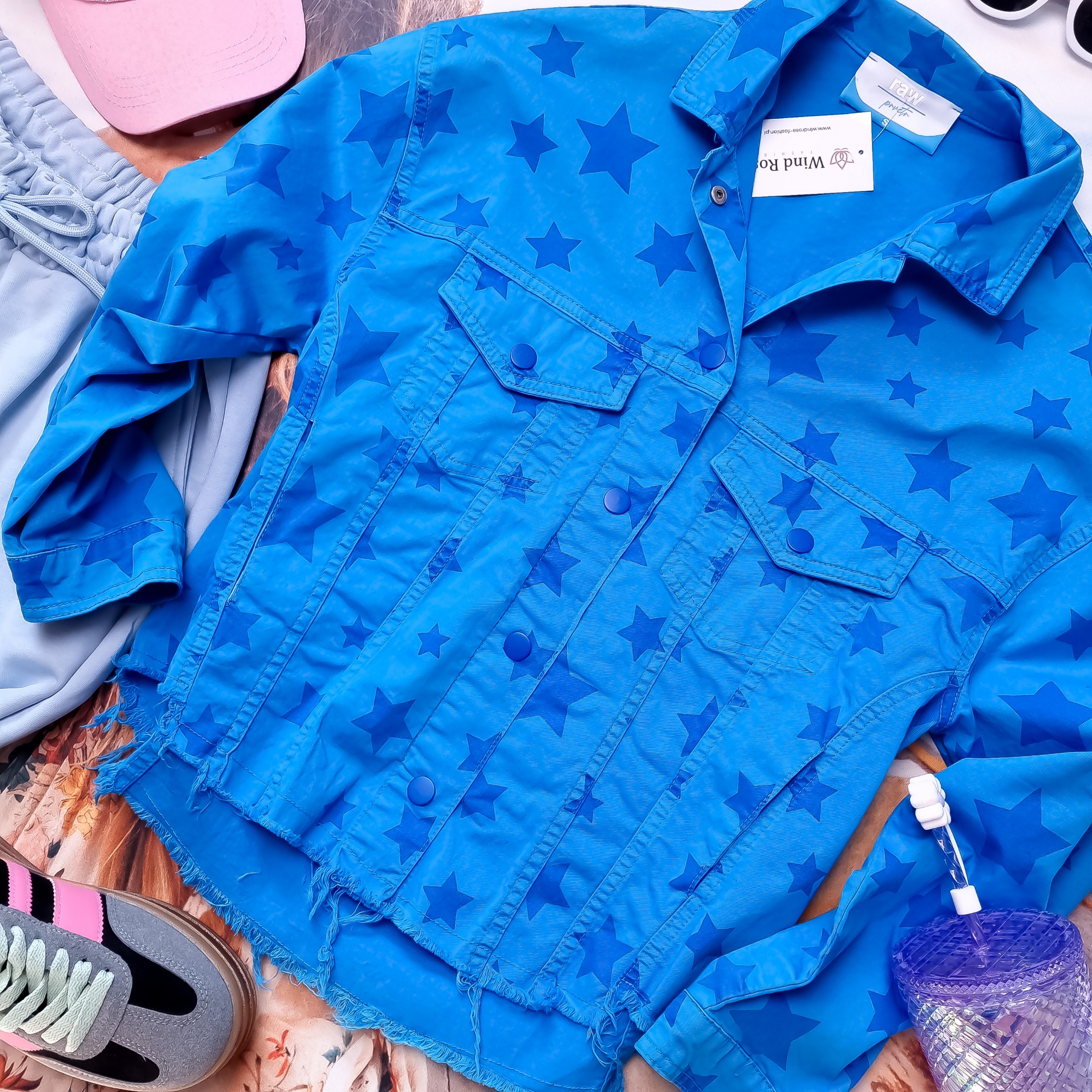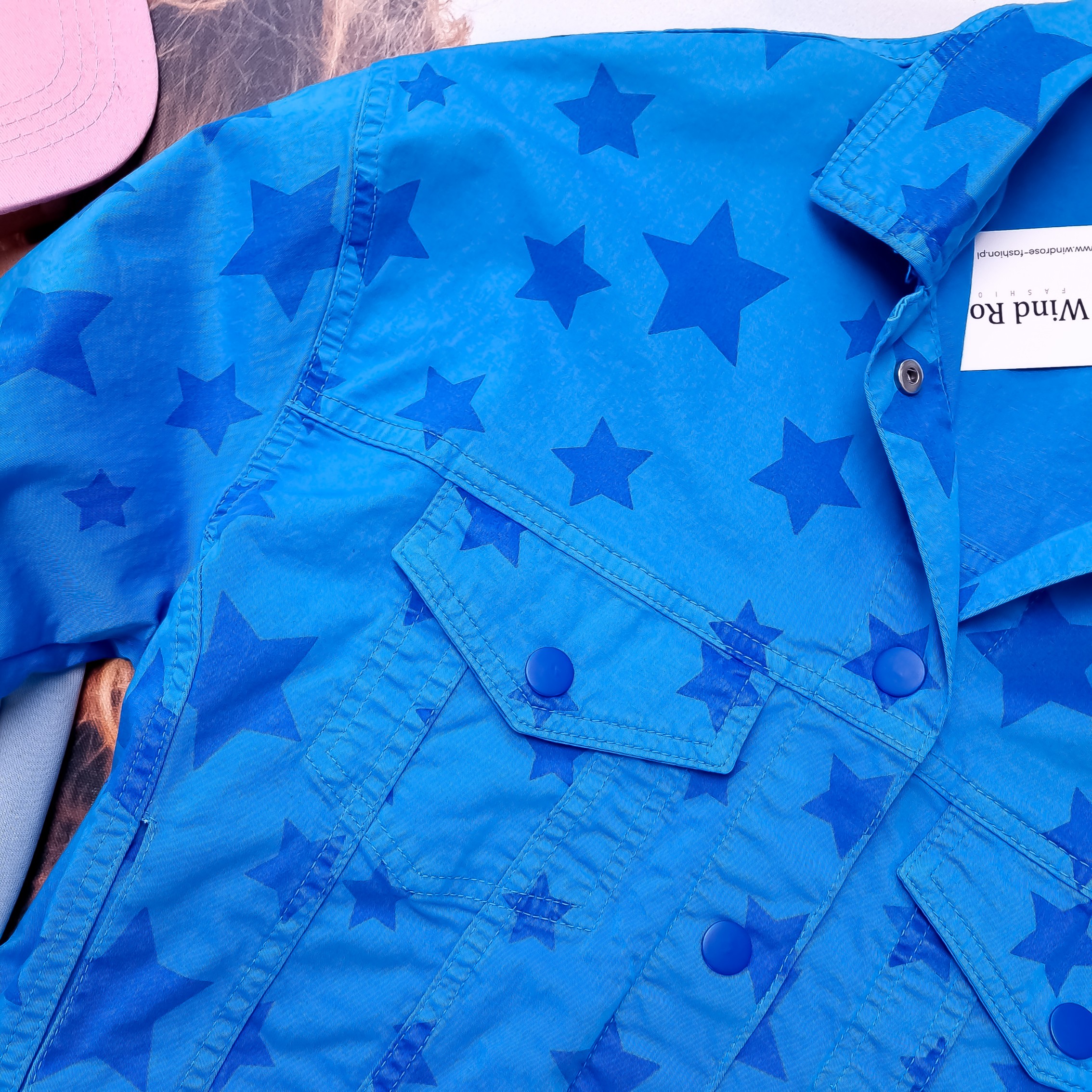 RAW - NIEBIESKA MATERIAŁOWA KURTKA W GWIAZDKI '