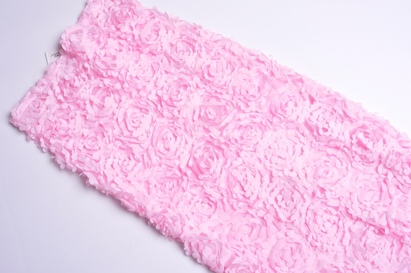 RÓŻOWA SUKIENKA MIDI - KWIATY 3D