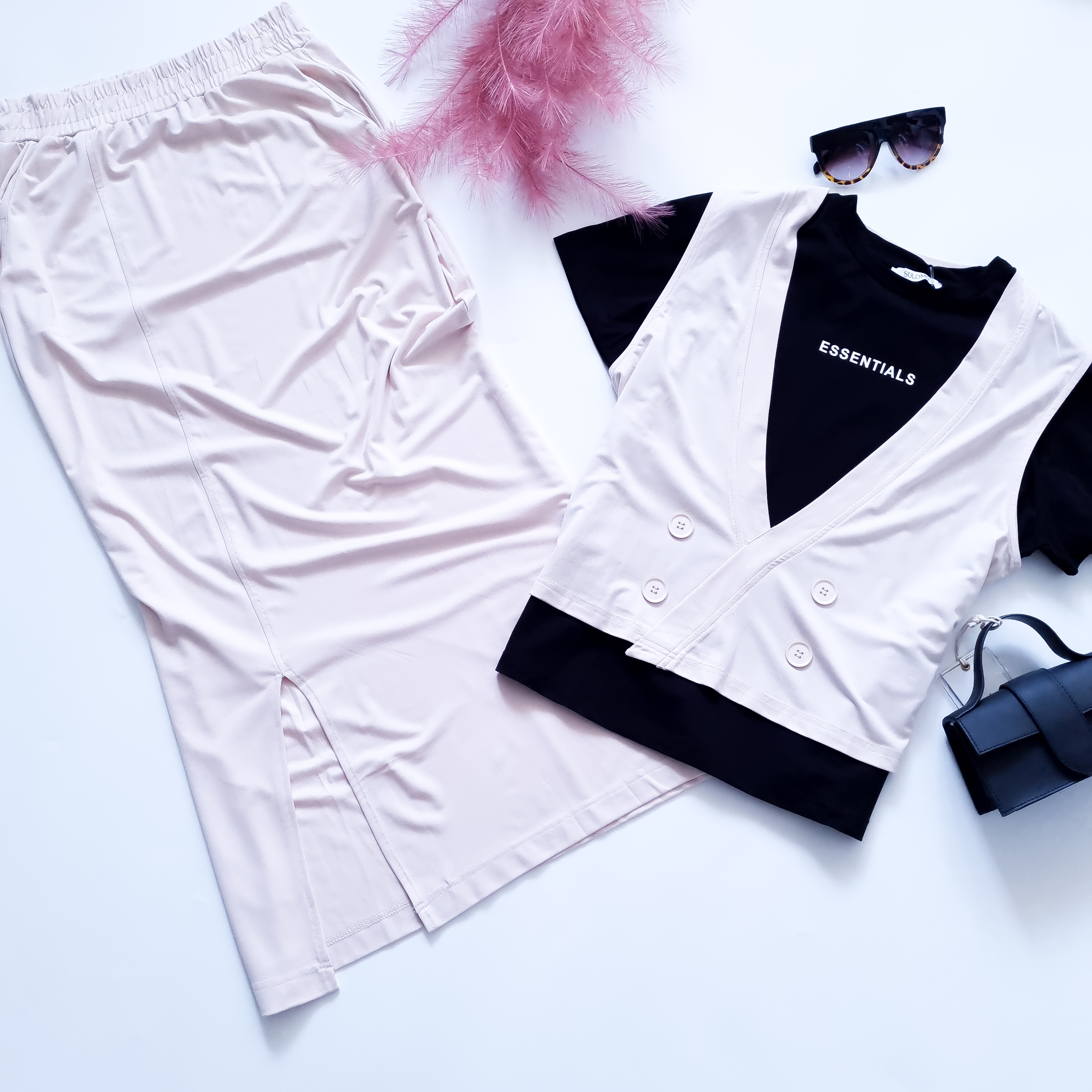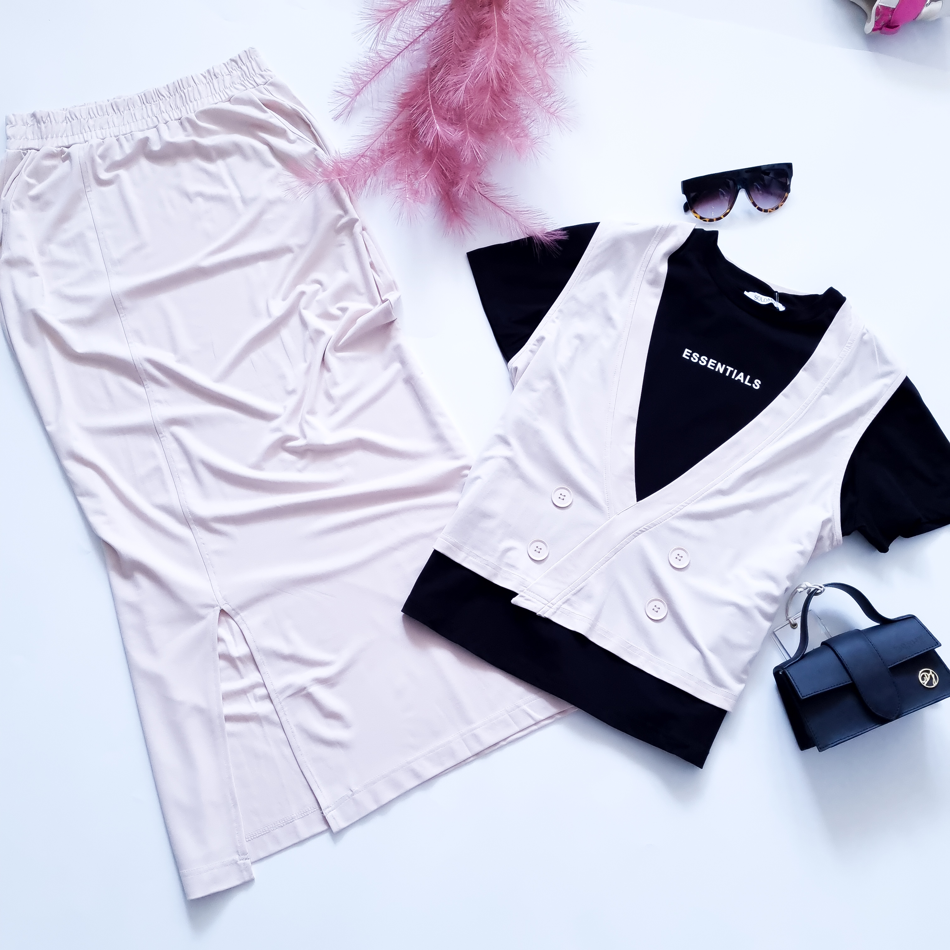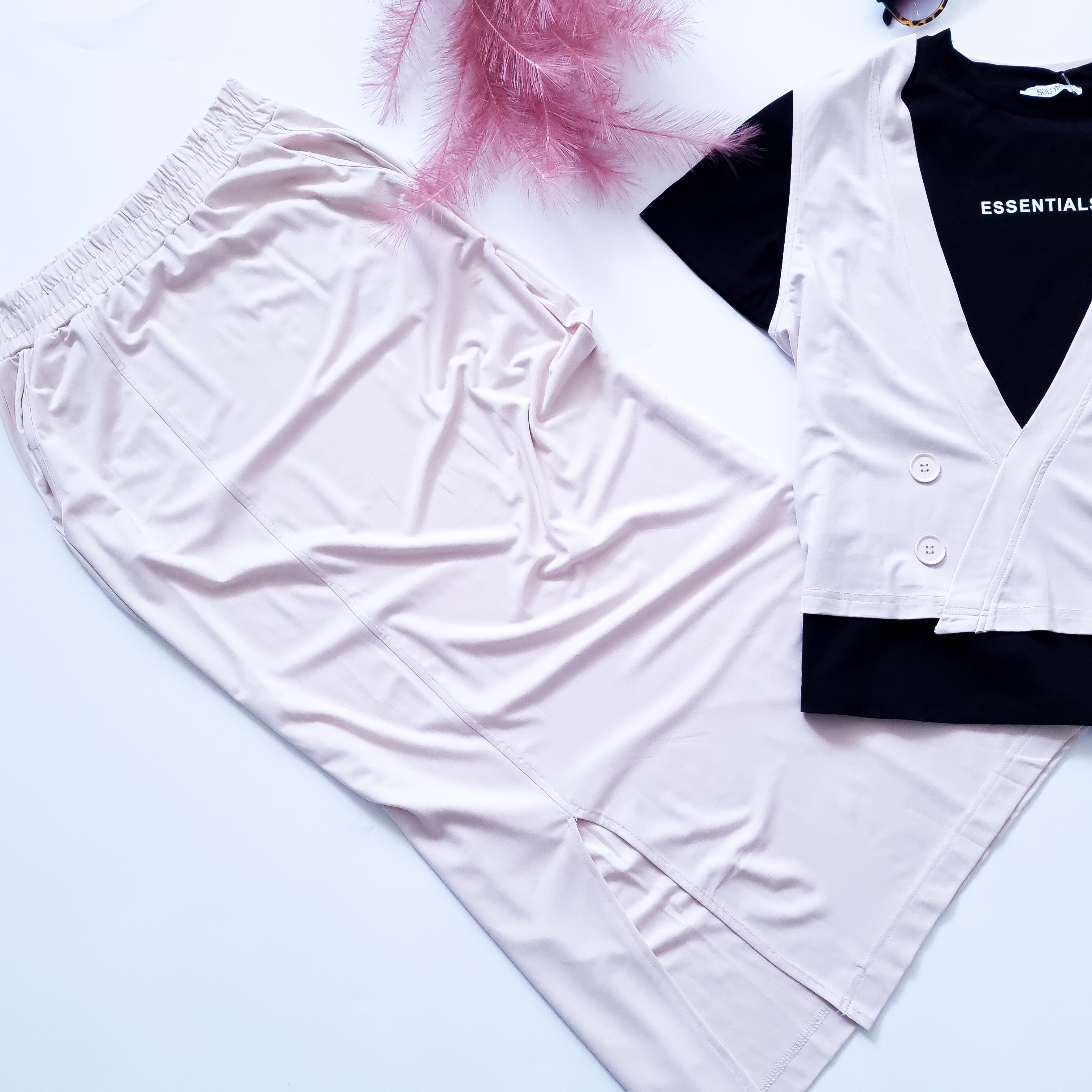 SOLOMIA - DWUKOLOROWY KOMPLET W KREMOWYM ODCIENIU Z KOSZULKĄ W ZESTAWIE