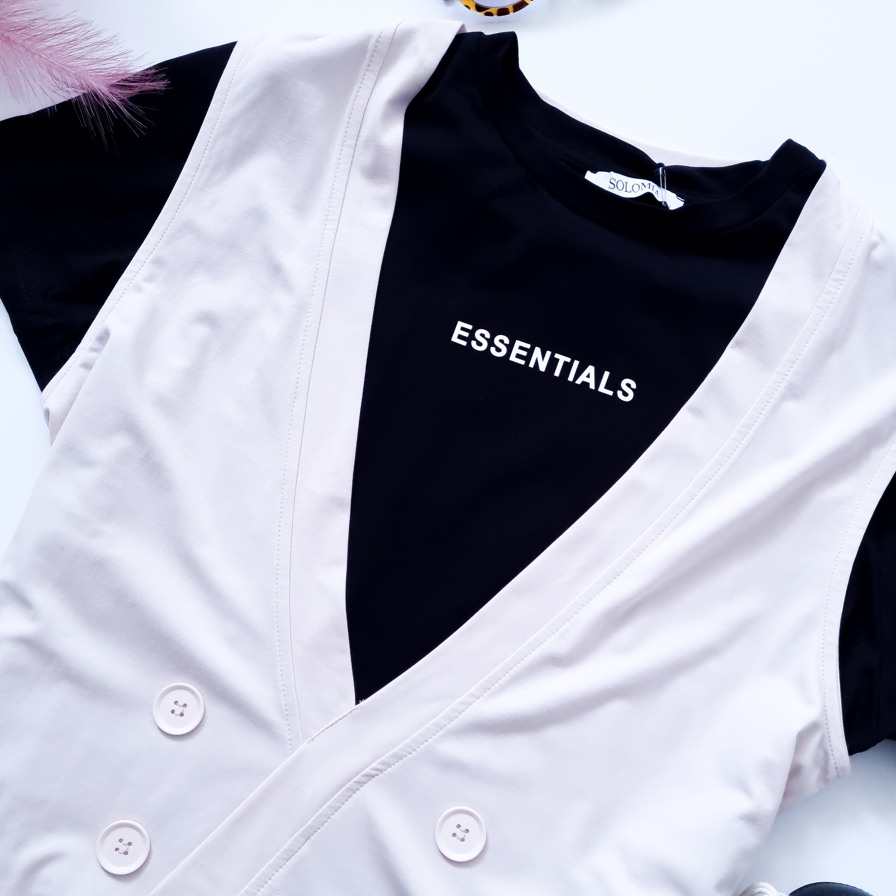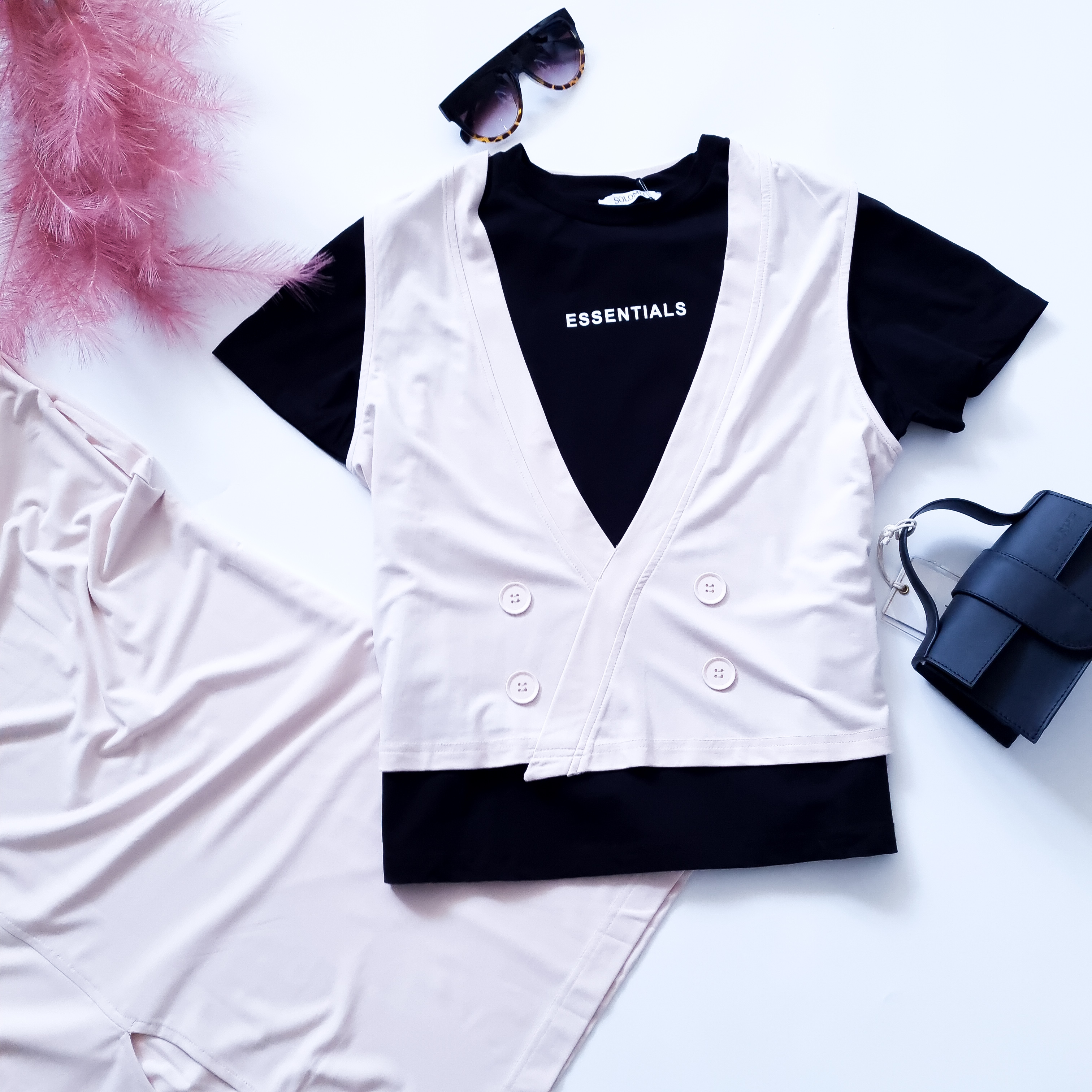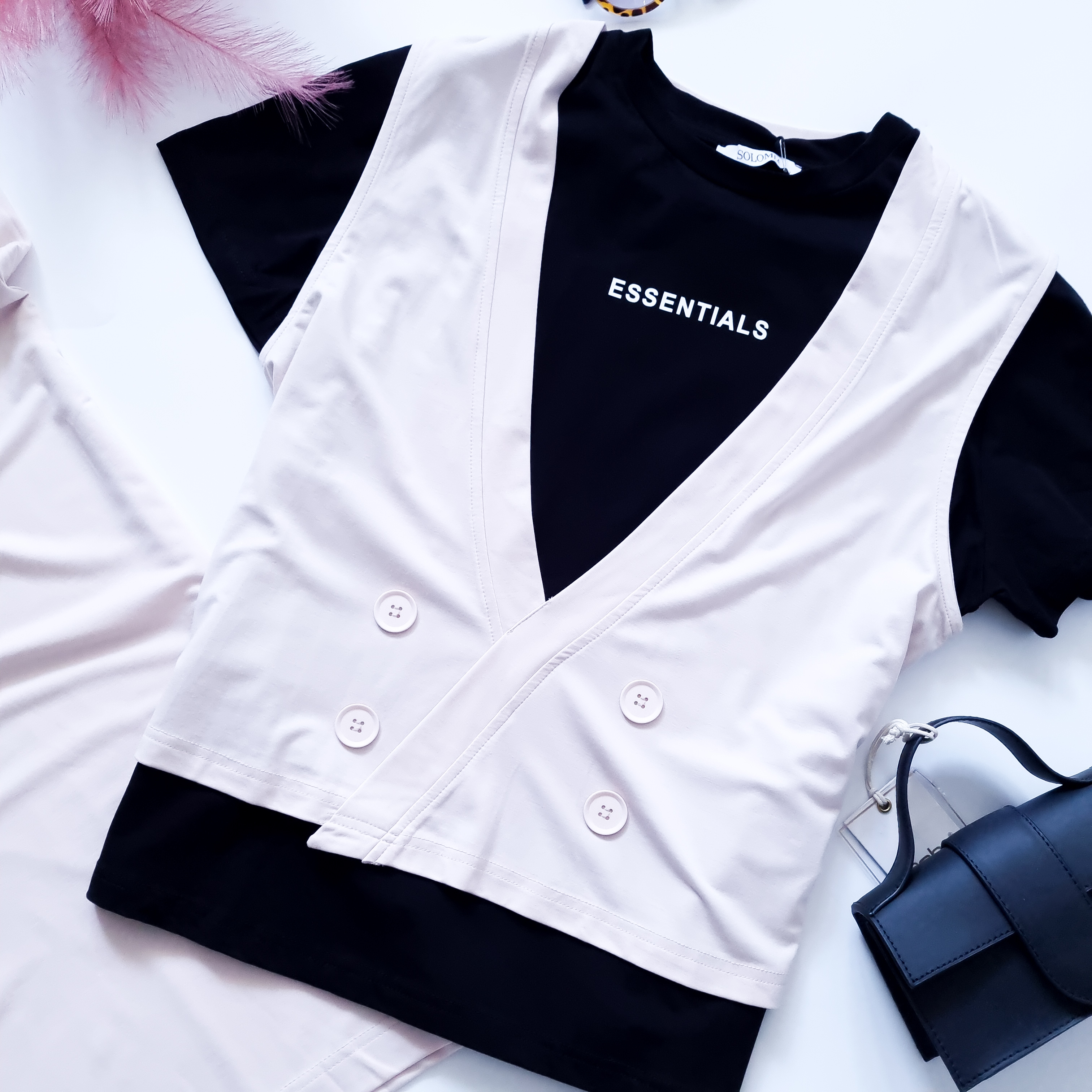 SOLOMIA - DWUKOLOROWY KOMPLET W KREMOWYM ODCIENIU Z KOSZULKĄ W ZESTAWIE
