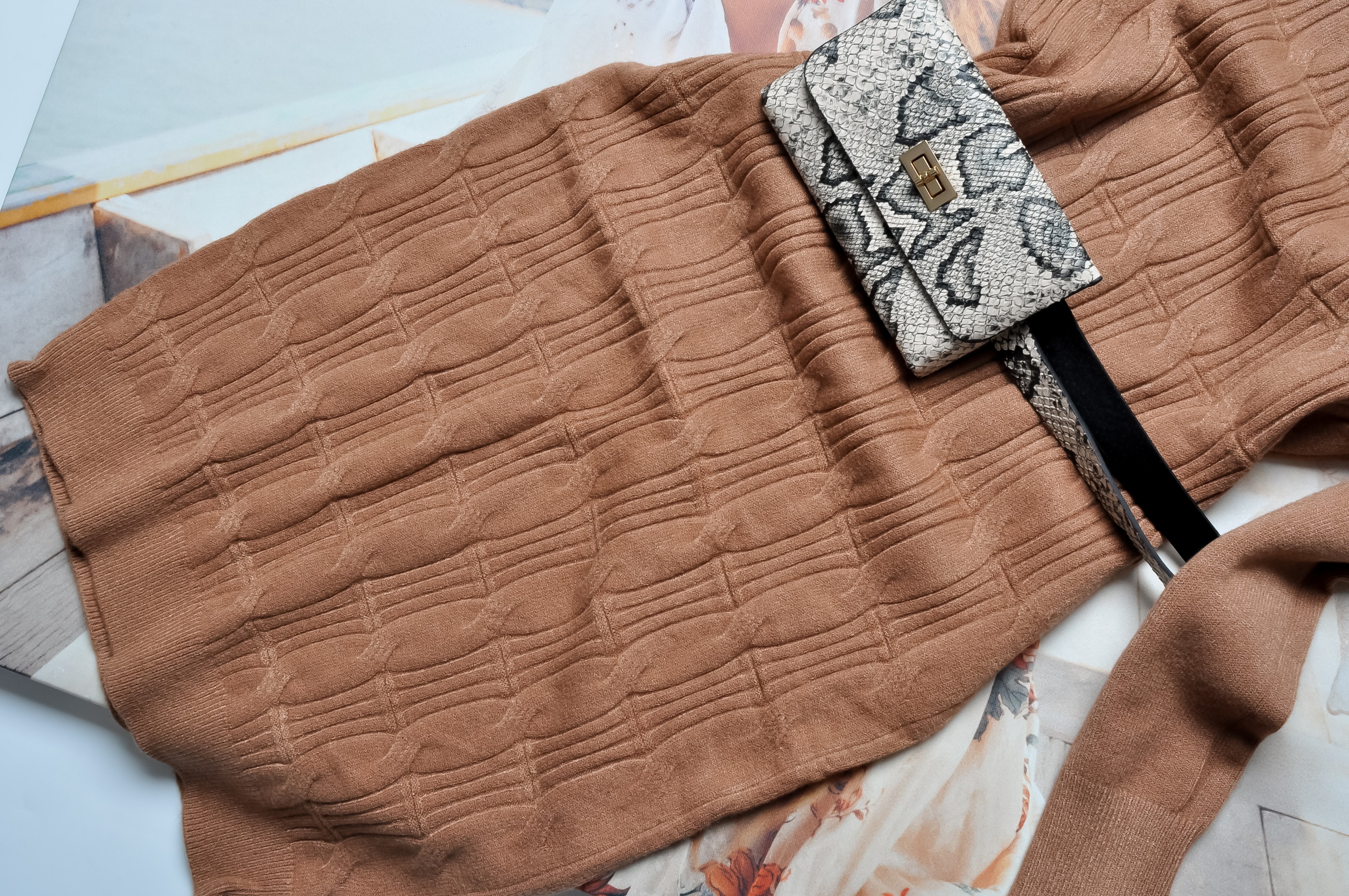 SUKIENKA W KARMELOWYM KOLORZE - SWETERKOWY SPLOT - PASEK