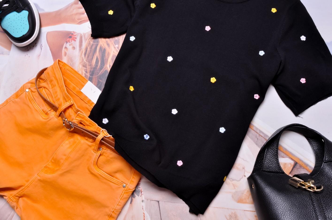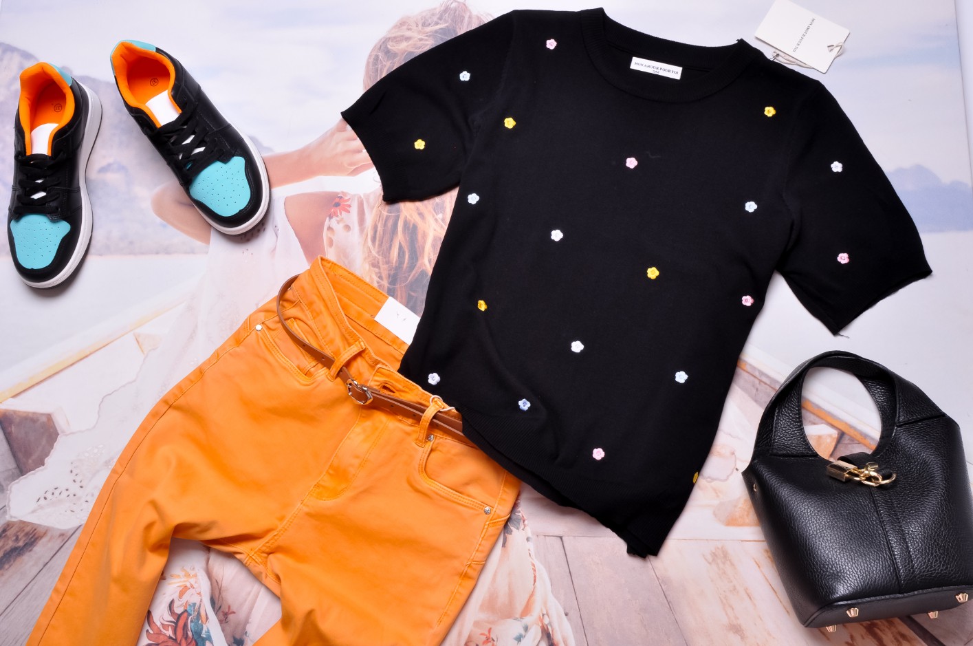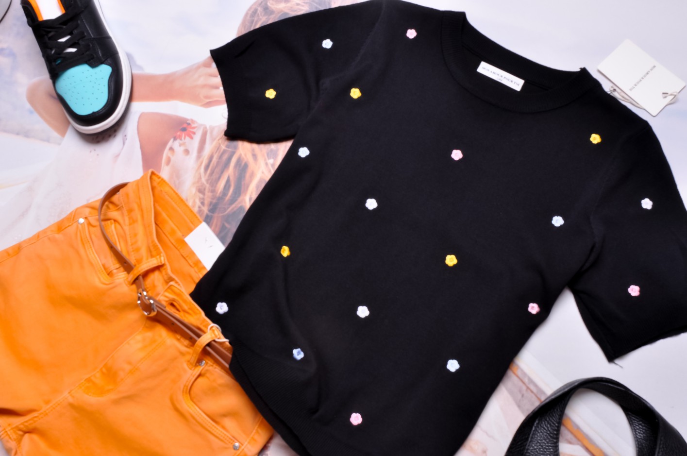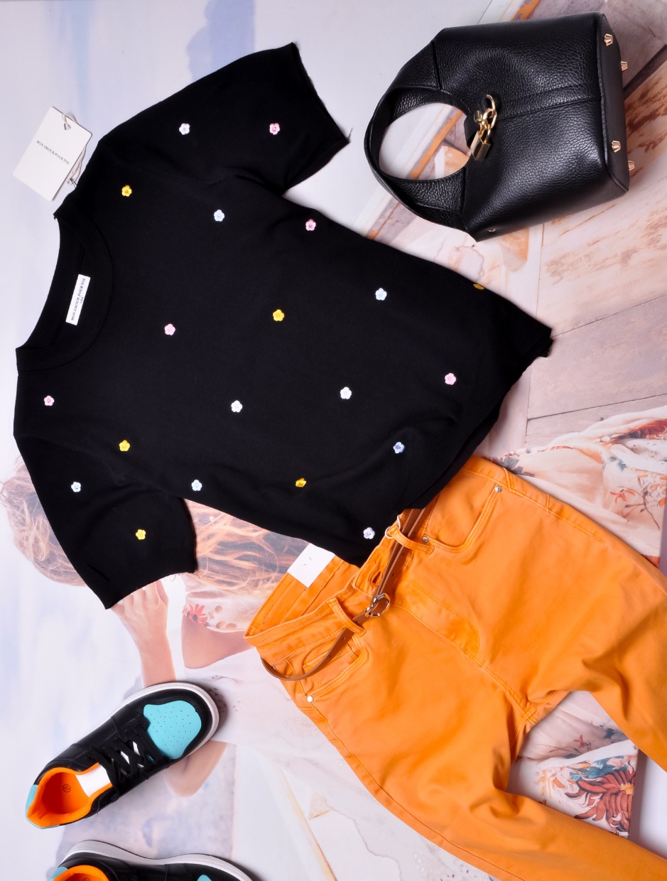 SWETEREK CZARNY - KOLOROWE KWIATUSZKI