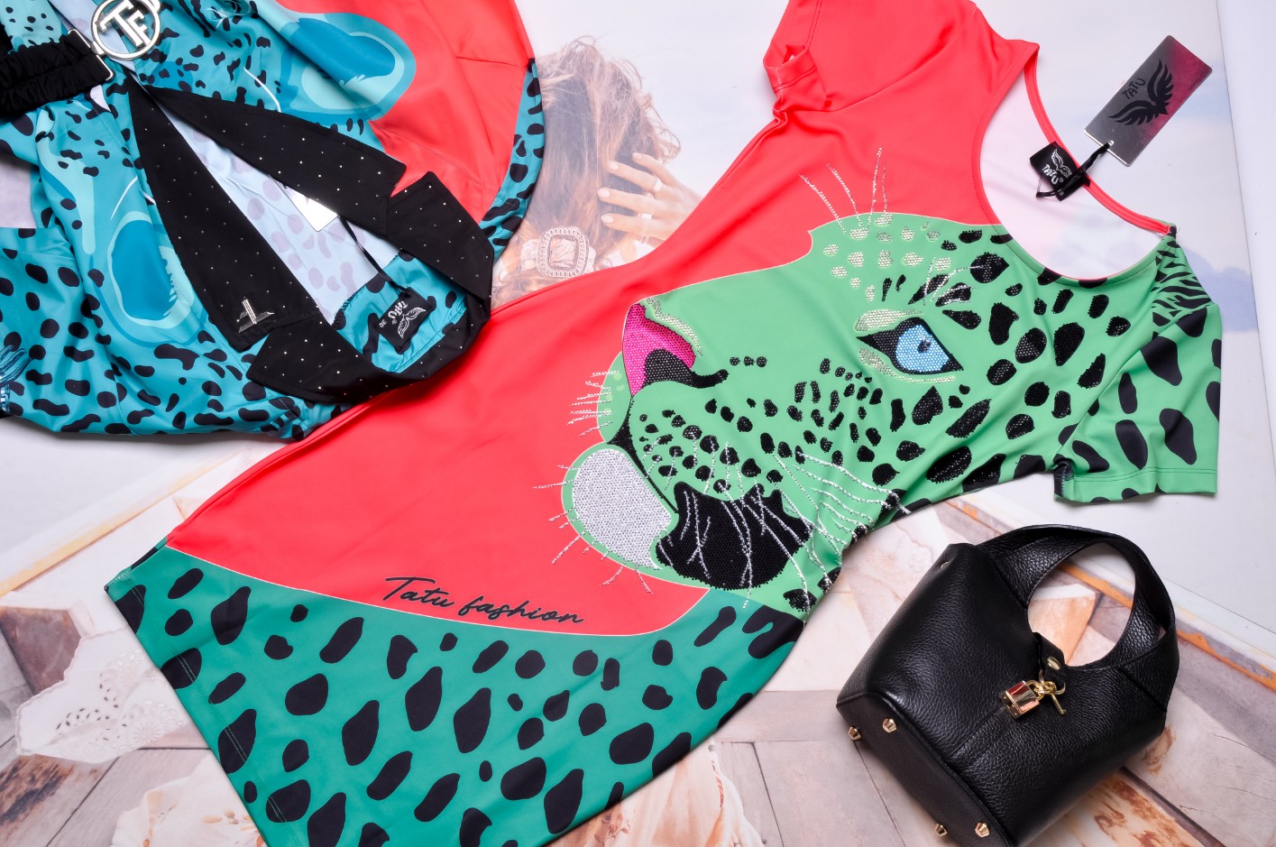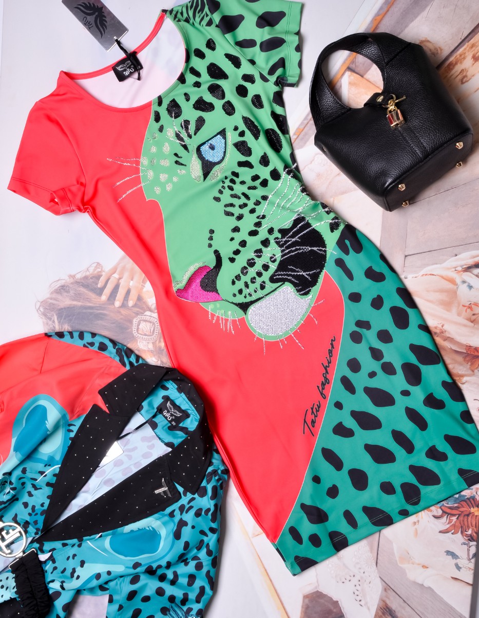 T.A.T.U - DOPASOWANA SUKIENKA Z ZIELONĄ PANTERĄ + CYRKONIE
