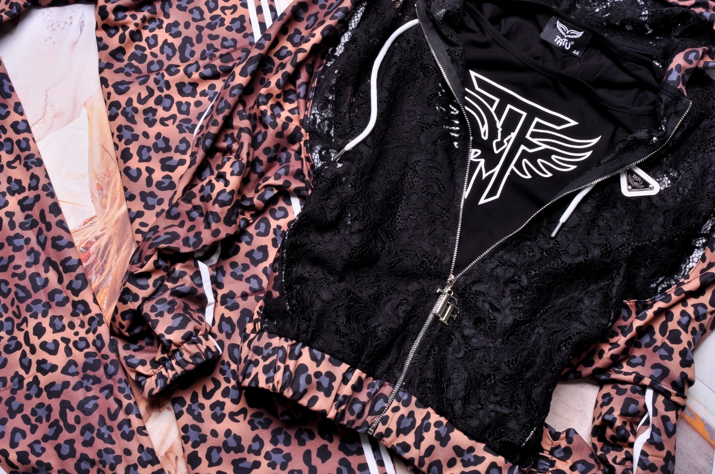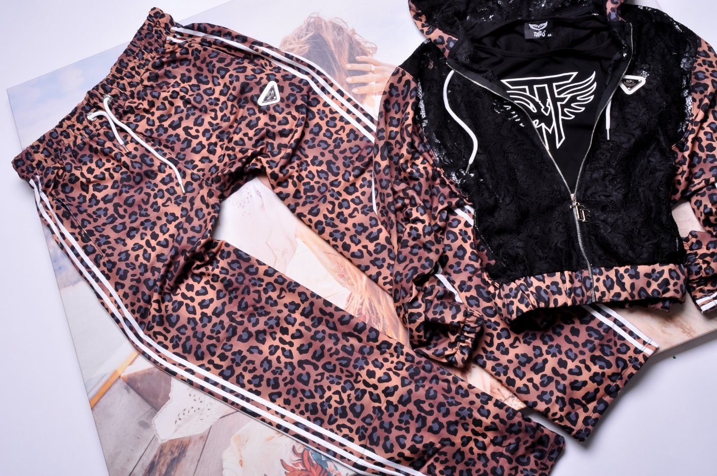 Komplet 3-częściowy – leopard print z koronką i topem z logo