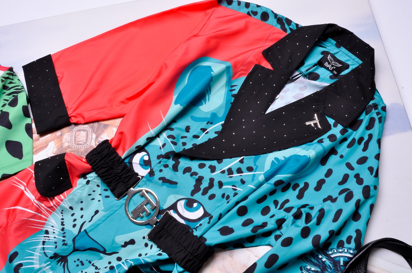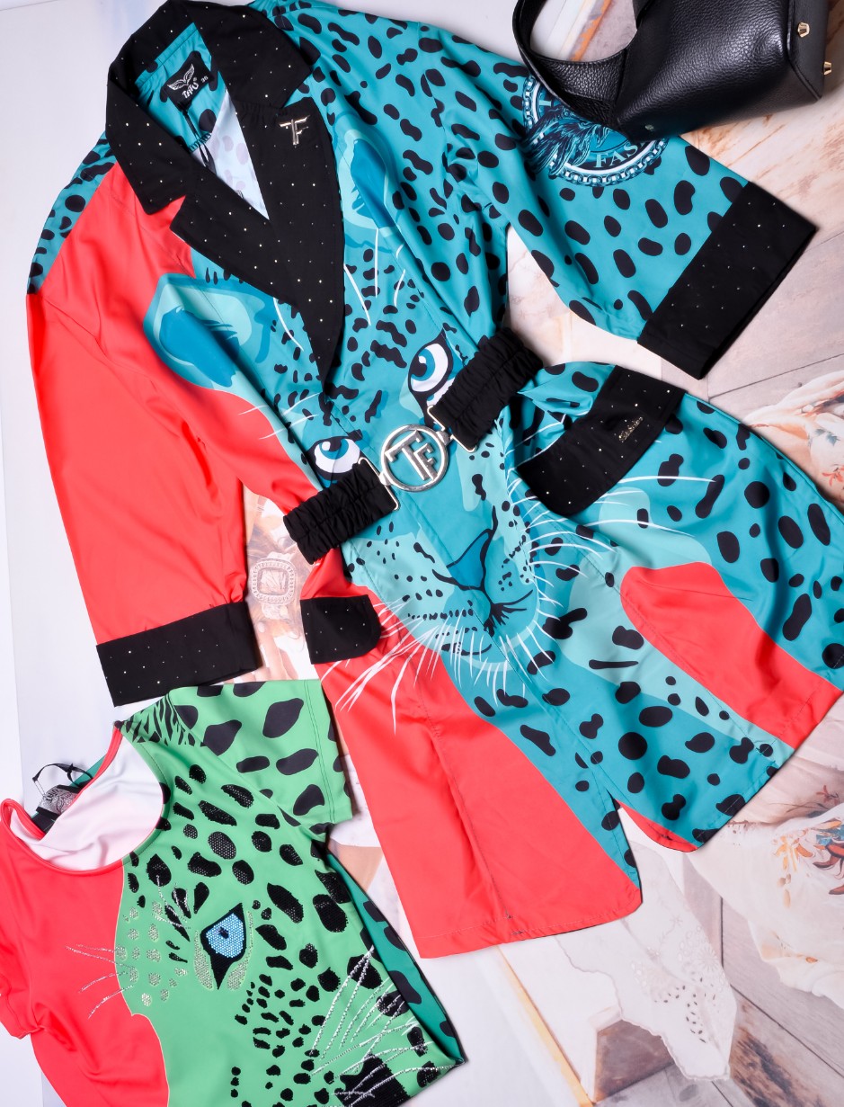 T.A.T.U. - WIOSENNY PŁASZCZ Z TURKUSOWĄ PANTERĄ + CYRKONIE