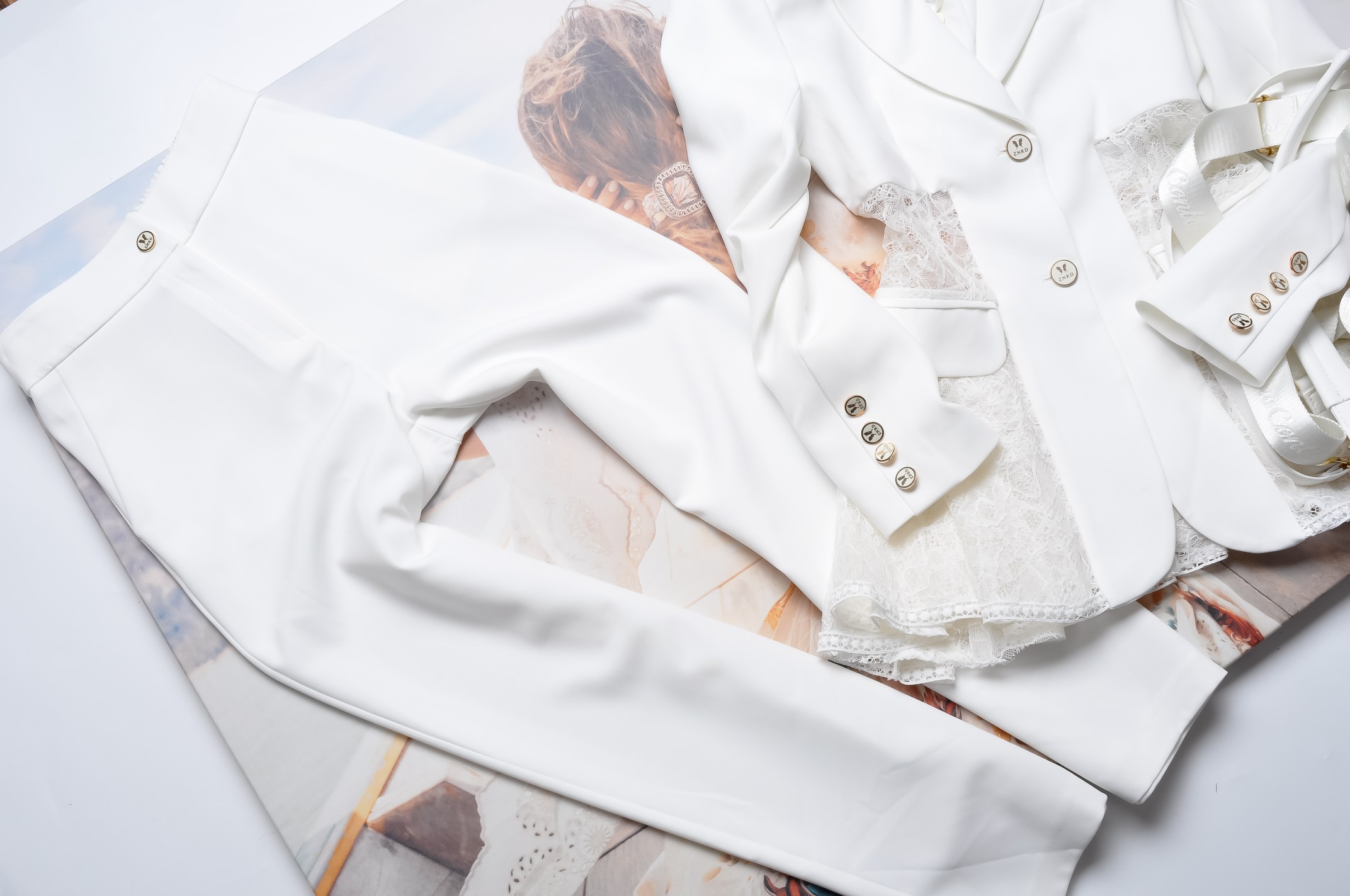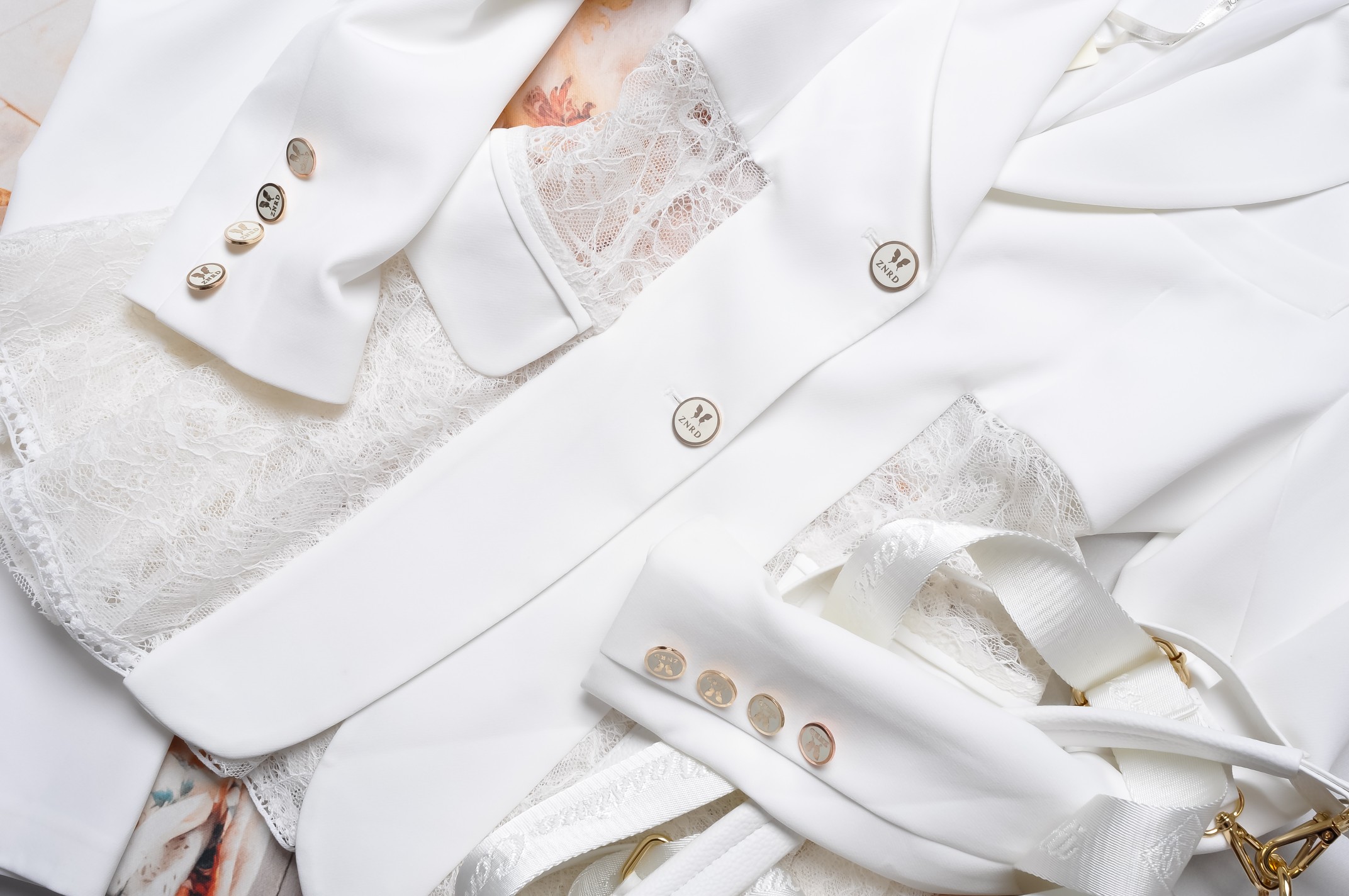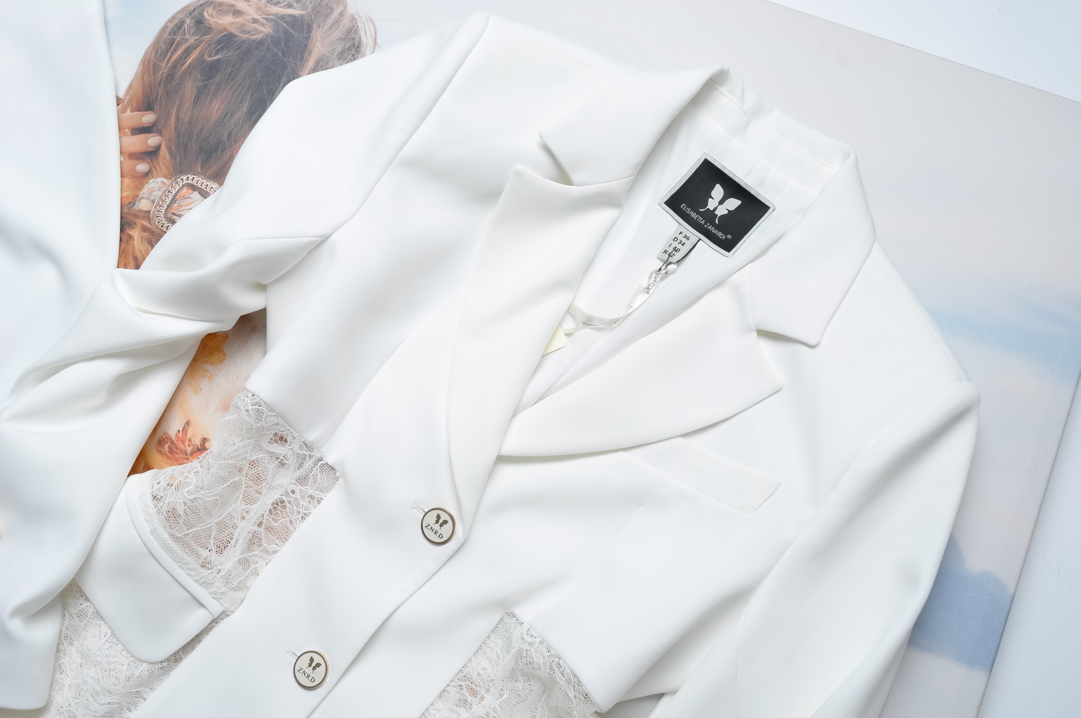 ZANARDI - BIAŁY ELEGANCKI KOMPLET - MARYNARKA Z KORONKĄ - SPODNIE