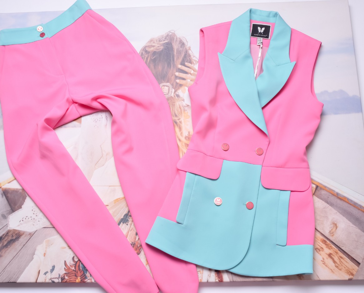 ZANARDI - ELEGANCKI RÓŻOWY KOMPLET - KAMIZELKA - SPODNIE