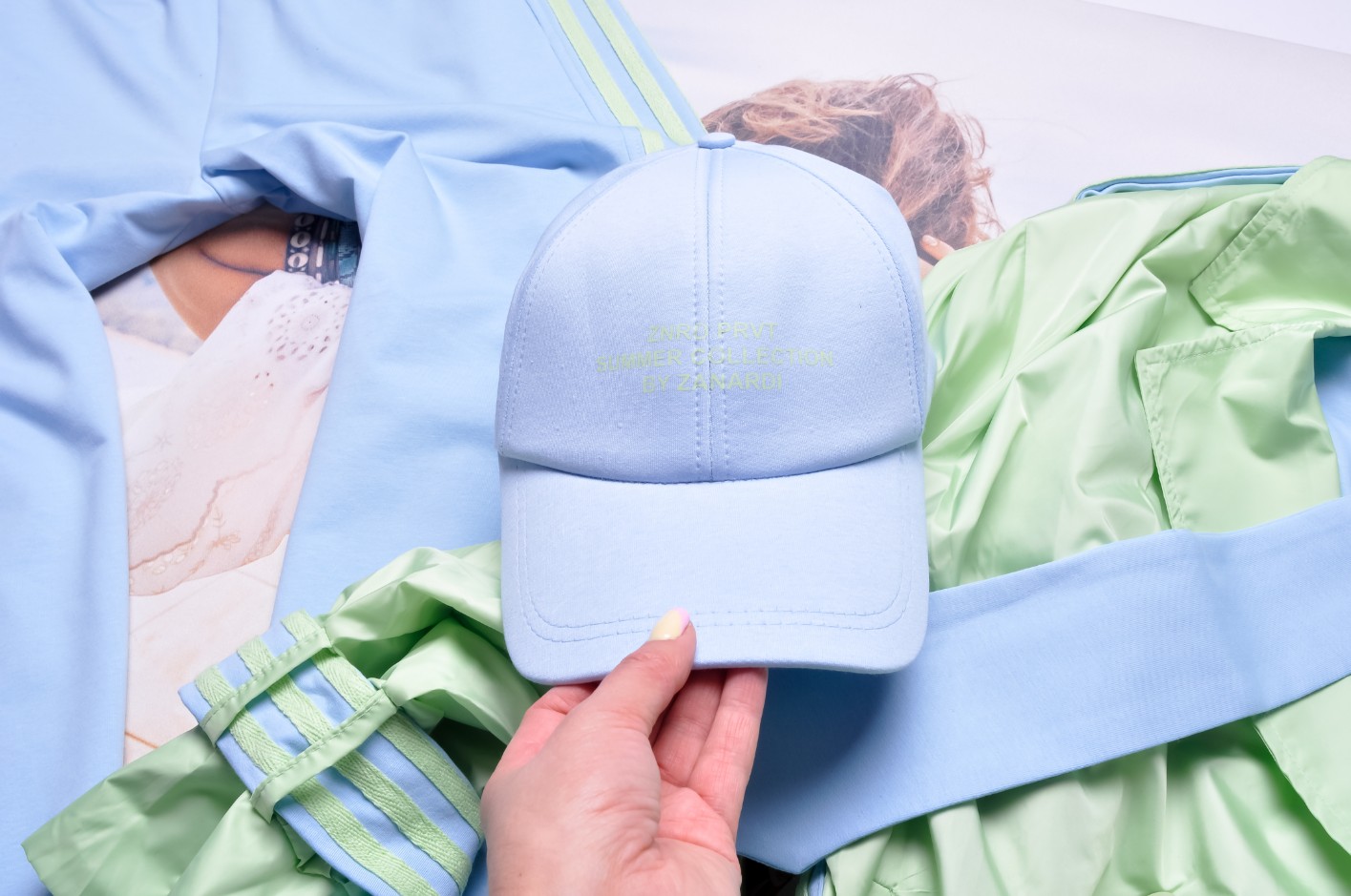 ZANARDI - ZIELONO - BŁĘKITNY KOMPLET Z CZAPKĄ I KRAWATEM